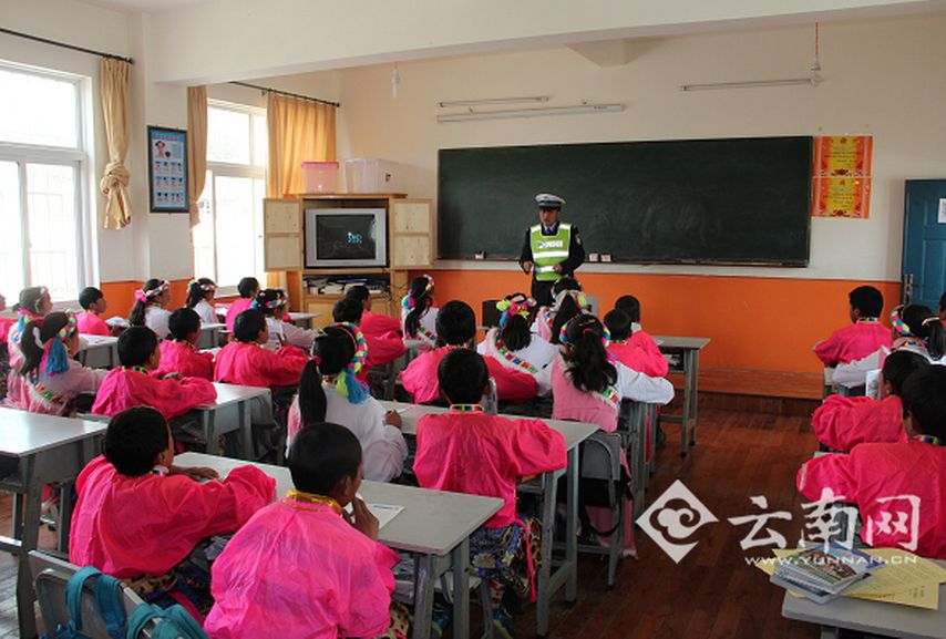云南香格里拉交警開展中小學(xué)安全宣傳教育日活動(dòng)(圖)